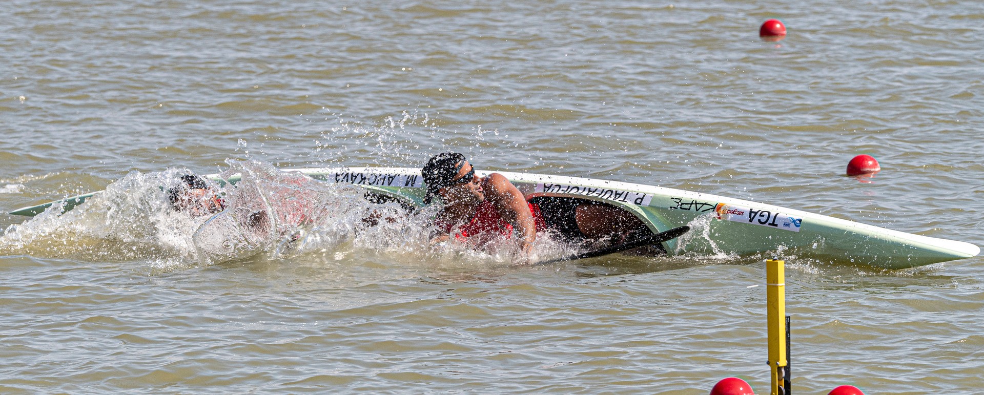 Pita Taufatofua-nak már volt egy kabaréba illő jelenetete a szegedi kajak-kenu vb-n, amikor is a rajthoz sem tudott rendesen beállni. Most pénteken pedig ismét alkotott, a társával beborult a vízbe a 200 méter távnak előfutamában.