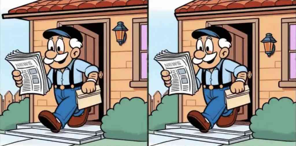 A képen egy kedves, idős bácsi látható, aki otthona előtt álldogál, egy újságot tart az egyik kezében, míg a másikban egy papírzacskót. Első pillantásra úgy tűnhet, hogy a két kép teljesen azonos, de ha alaposabban megnézed, észreveheted, hogy három apró, de annál fontosabb eltérés is van közöttük.