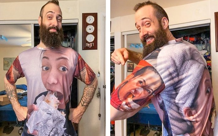 1. A férjem csináltatott magának egy pólót olyan nem túl előnyös fotókból, amiken én vagyok látható zabálás közben.