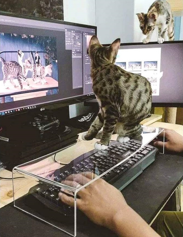 5. Van két macskám, akik folyton körülöttem és a billentyűzeten sündörögnek, amikor dolgozni próbálok. Hogy ne zavarjanak, és ők is jól érezhessék magukat, elhelyeztem egy átlátszó állványt a billentyűzet fölé.