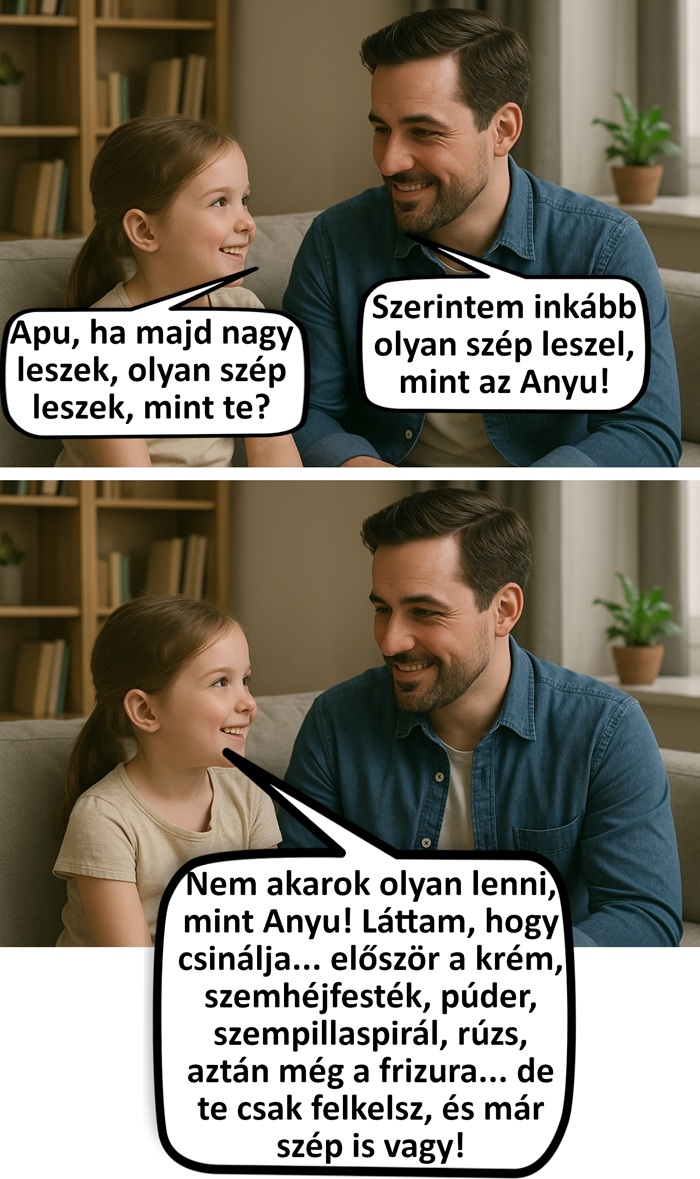 2. A kislány hosszú megfigyelések alapján levonta a következtetéseket, és arra jutott, hogy az apukájára szeretne hasonlítani.