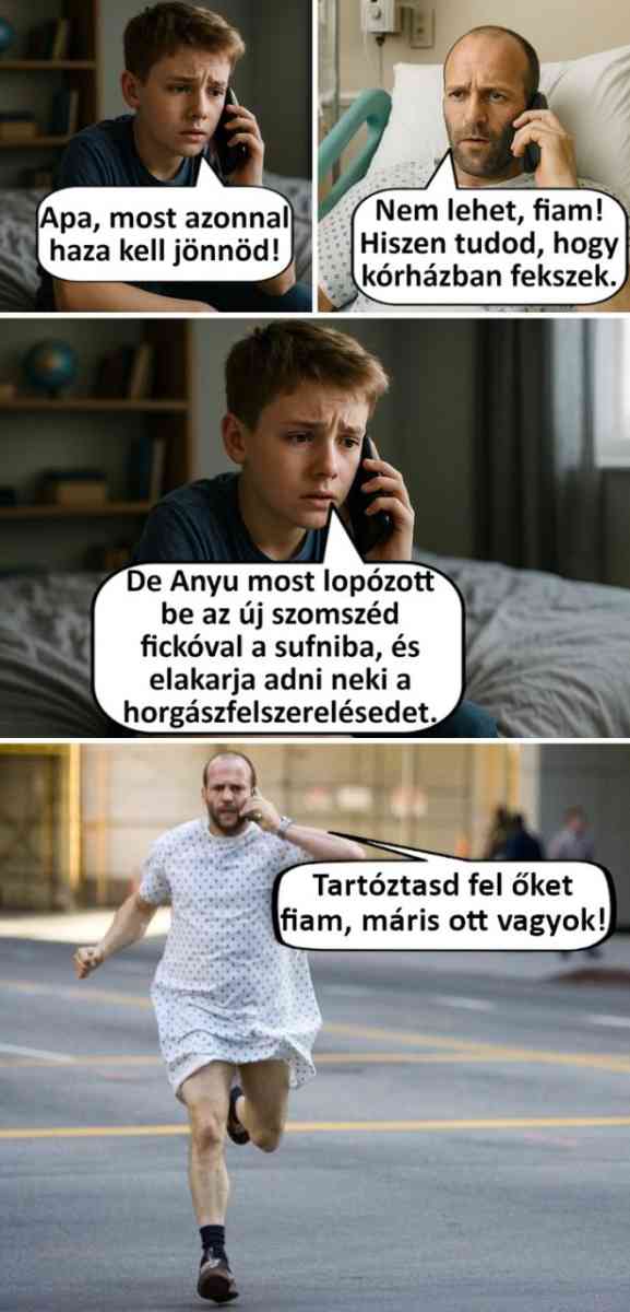 2. Ugyan azt nem tudjuk, hogy az apa milyen problémával feküdt a kórházban, de az biztos, hogy a fia szavai hatására hamar kilábalt belőle.