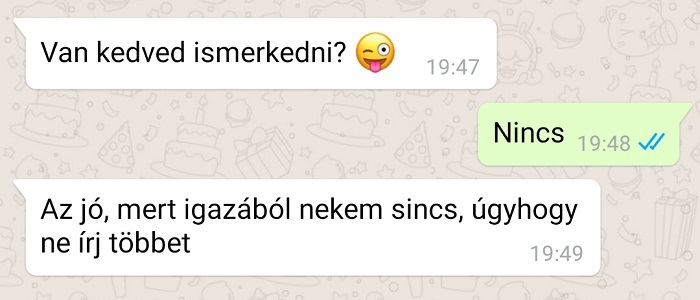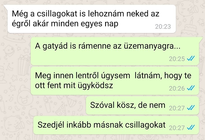 11. Valószínűleg a srác azóta is azzal a tudattal él, hogy ezzel a szöveggel sikerült megőrizne a méltóságát és a büszkeségét, pedig éppen az ellenkezőjét sikerült elérnie vele.