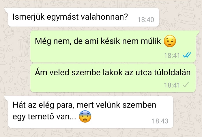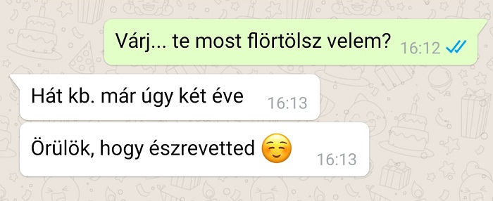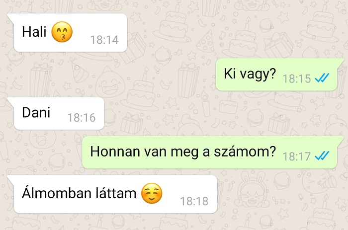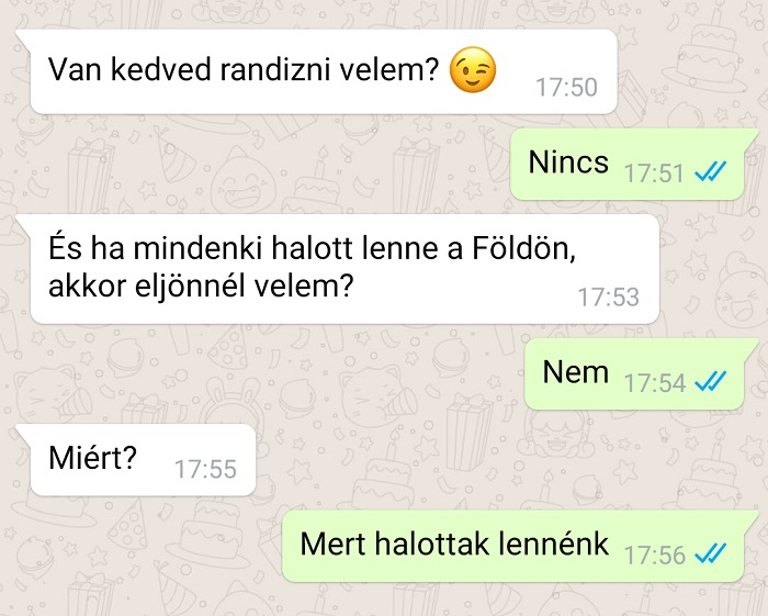 7. Az sajnos már nem derült ki a párbeszédből, hogy a lány ezek után elutasította-e főhősünk nem túl egyértelmű közeledését.
