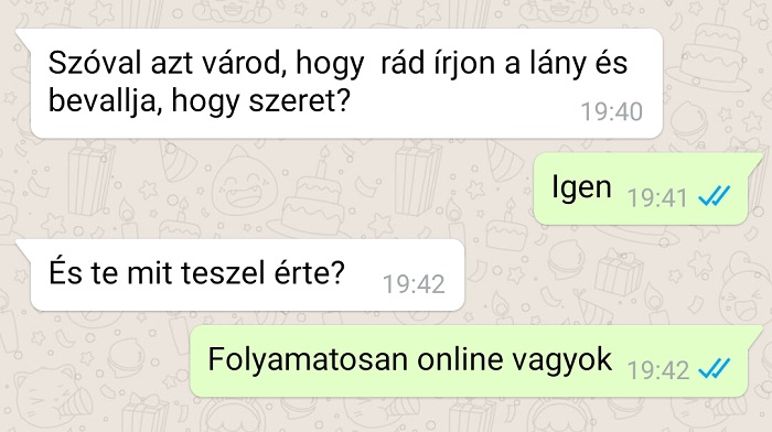 12. Ettől a dumától még annak is szekunder szégyenérzete támad, aki nem tartozik azon „szerencsés” lányok közé, akik személyesen kaptak ilyen üzenetet a fiatalembertől.