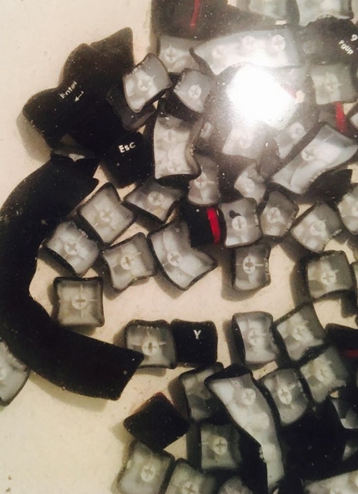 9. A barátom szerette volna lefertőtleníteni a billentyűzetének a gombjait, ezért egy vízzel teli tálba rakta őket, majd pedig felforralta:
