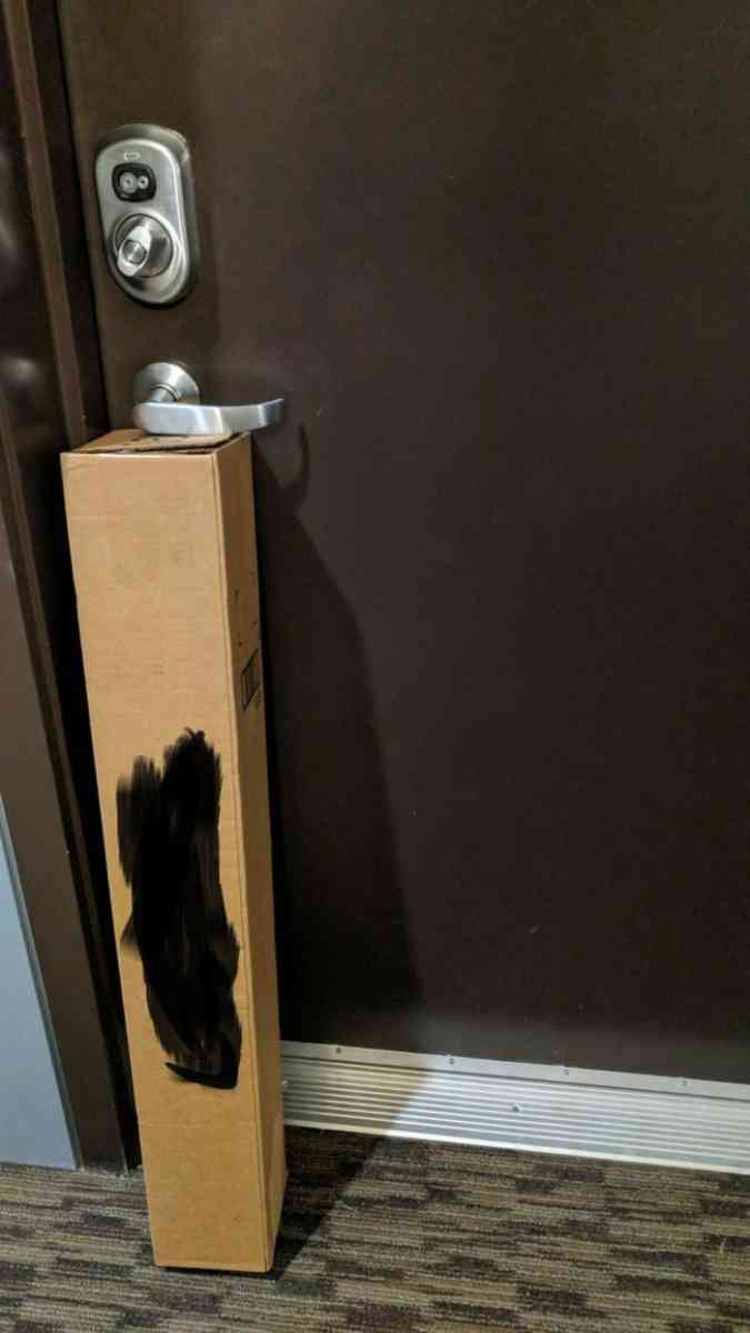 1. A futár a kilincs alá betámasztva hagyta ott a csomagot az ajtónknál. Mivel közben otthon voltunk, így fogságba estünk a saját otthonunkban, ugyanis belülről nem tudtuk kinyitni az ajtót. Végül segítséget kellett hívnunk.
