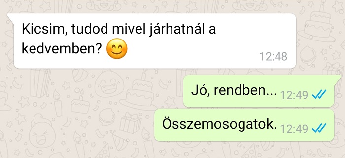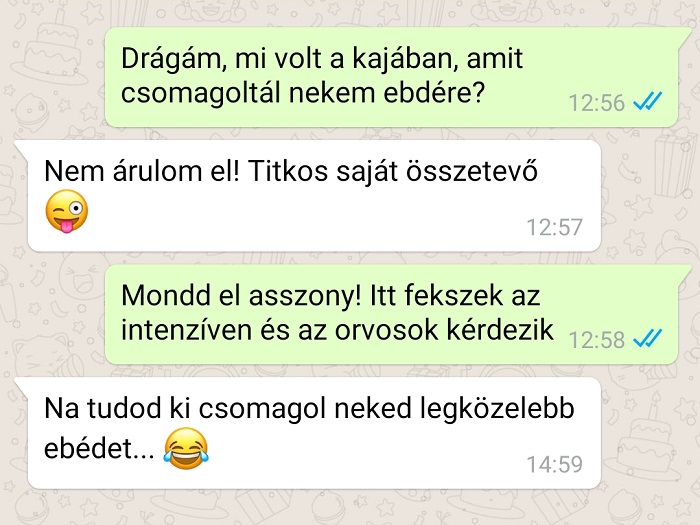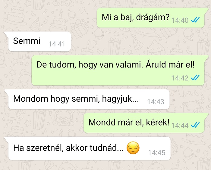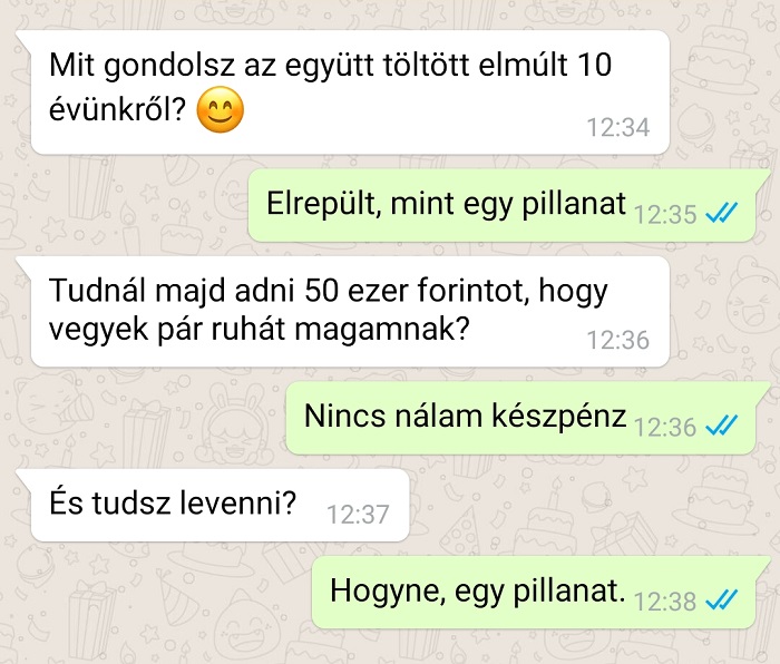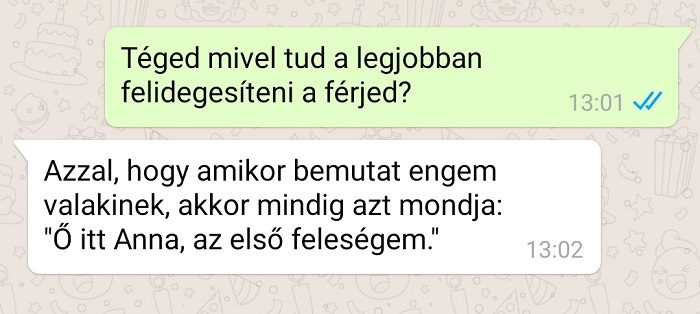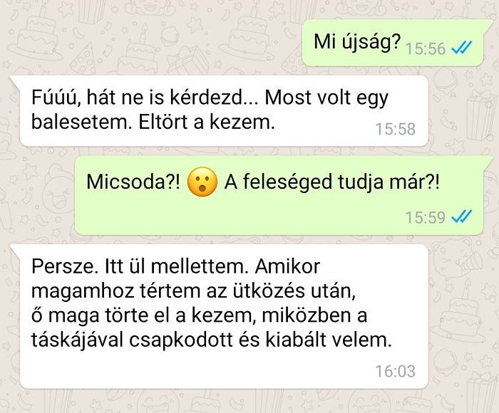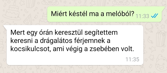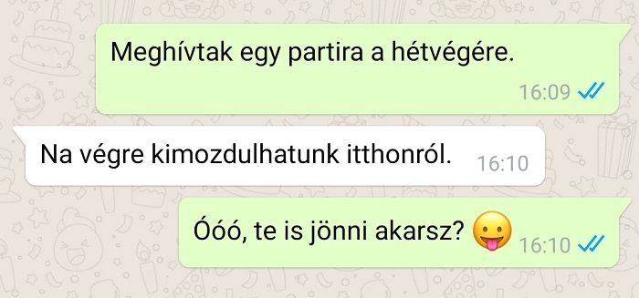 10. Azt egy szóval sem említette a férj, hogy mindketten hivatalosak lennének a partira.