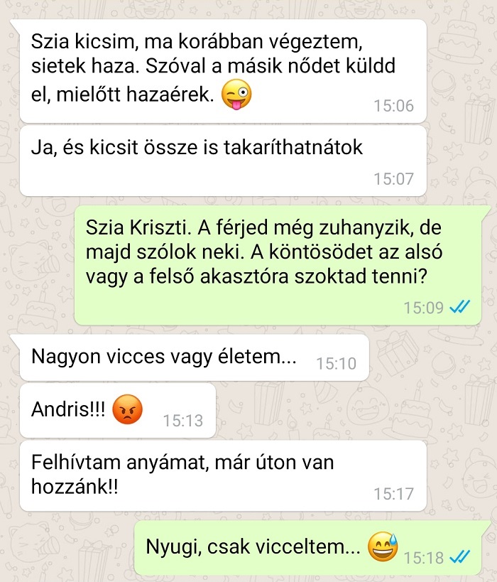 2. Először csak a feleség akarta egy kicsit ugratni a férjét, de aztán fordítva sült el a dolog.
