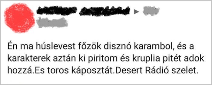 3. Próbáltuk megfejteni a teljes menüsort, de nem jártunk sikerrel. Mindenesetre a disznó karambol és desszertnek egy rádió azért elég jól hangzik.