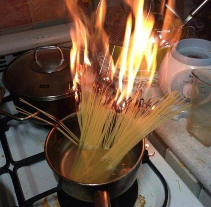 14. A feleségem már hónapok óta rágta a fülemet, hogy szeretne egy új tűzhelyet, és úgy tűnik, hogy ma végleg elfogyott a türelme. Na de a viccet félretéve, ez az eredménye, ha fogalmad sincs a kukta helyes használatáról, és úgy állsz neki főzni benne.