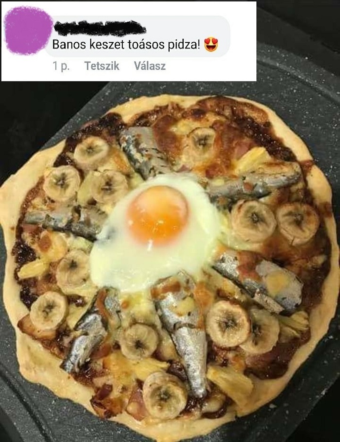 11. Sokan vannak, akik szerint már az is súlyos vétek, ha valaki ananászt rak a pizzára. Ennek fényében kíváncsiak lennénk, hogy vajon ők milyen véleménnyel lennének erről a banános-halas kompozícióról: