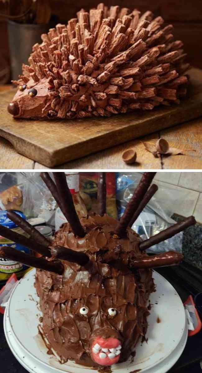 1. A feleségem kitalálta, hogy netes képek alapján saját kezűleg fog készíteni egy süni tortát a kislányunk születésnapjára. Nos, a végeredmény hagyott maga után némi kívánnivalót.