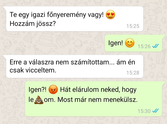 (11) A srác a lánykérés alkalmából 99 darab iphone-nal lepte meg a szíve választottját, de ez sem volt elég a boldogító igenhez. Legközelebb talán inkább 100 telefonnal kellene próbálkoznia.