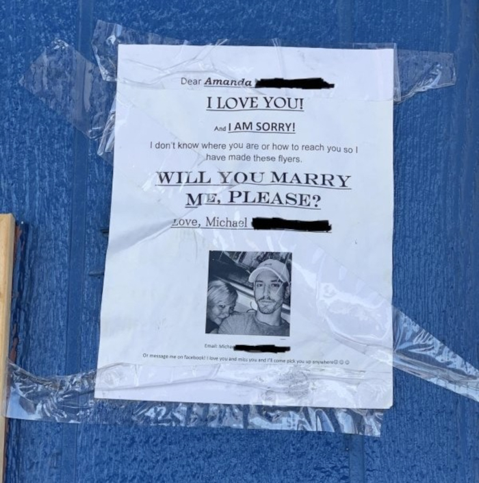 (6) Szöveg: Kedves Amanda! Szeretlek és sajnálom! Nem tudom, hogy hol vagy, és hogy hogyan érhetnélek el, ezért ezekkel az utcai apróhirdetésekkel próbálkozom. Hozzám jössz feleségül?