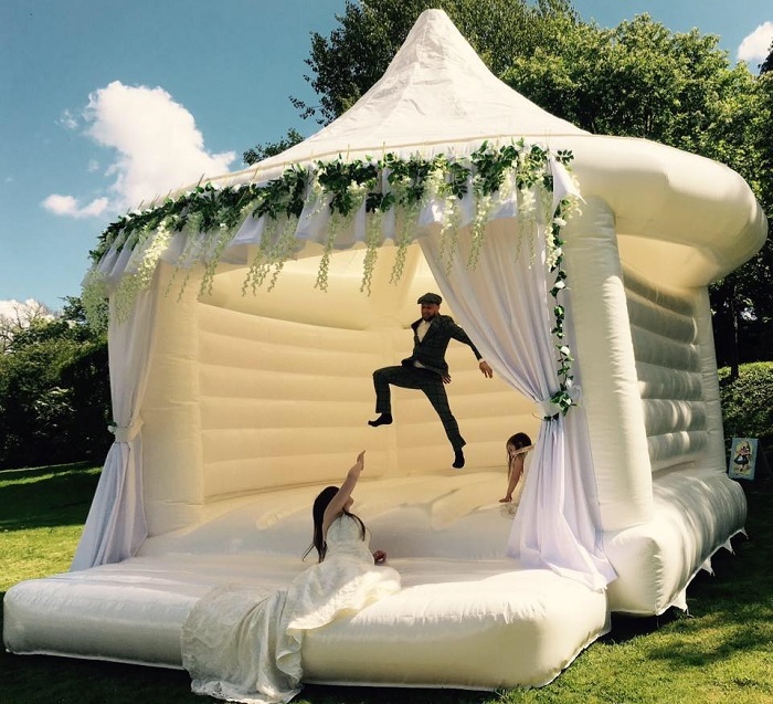 8. A vőlegényem felvetette az ötletet, hogy az esküvőnkön legyen ugrálóvár a gyerekeknek. Nos, az az érzésem, hogy valójában nem is a gyerekek miatt szerette volna az ugrálóvárat.
