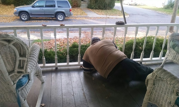 3. Az én drágalátos férjem beszorult a veranda korlát közé, ugyanis be szerette volna bizonyítani, hogy kifér rajta a feje.