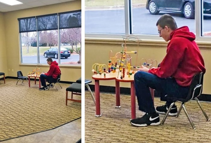 5. Amíg a bankban a sorunkra vártunk a férjemmel, ő egyszer csak fogta magát és leült játszani a gyereksarokban.