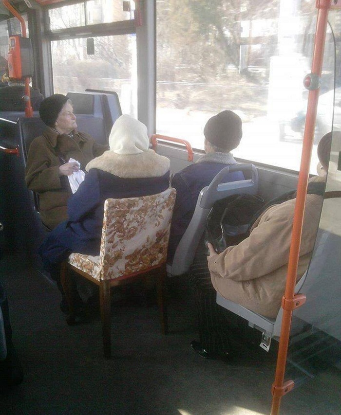 12. A néni nem bízza a véletlenre, és inkább saját széket visz magával, ha tömegközlekedési eszközre kell szállnia.