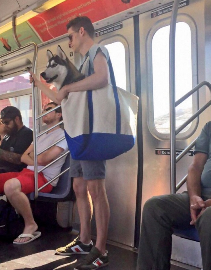 1. Nagytestű kutyák nem utazhatnak a New York-i metrón, csak azok, amelyek elférnek egy hordozóban. A srác megoldotta.