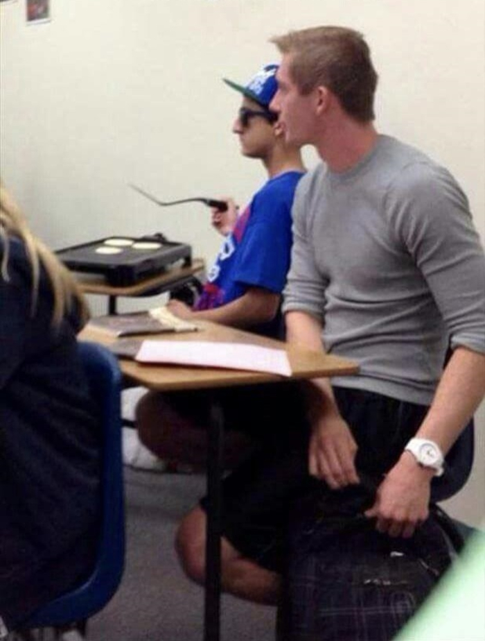 8. Az osztálytársam elaludt, ezért nem volt ideje otthon megreggelizni. Szóval az óra közepén nekiállt amerikai palacsintát sütni.