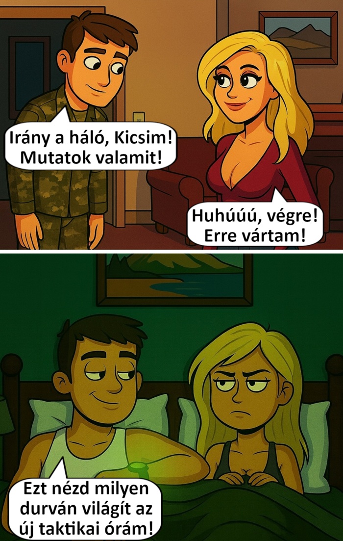 10. Katona férj hazatér fél után, a felesége pedig kitörő örömmel fogadja.