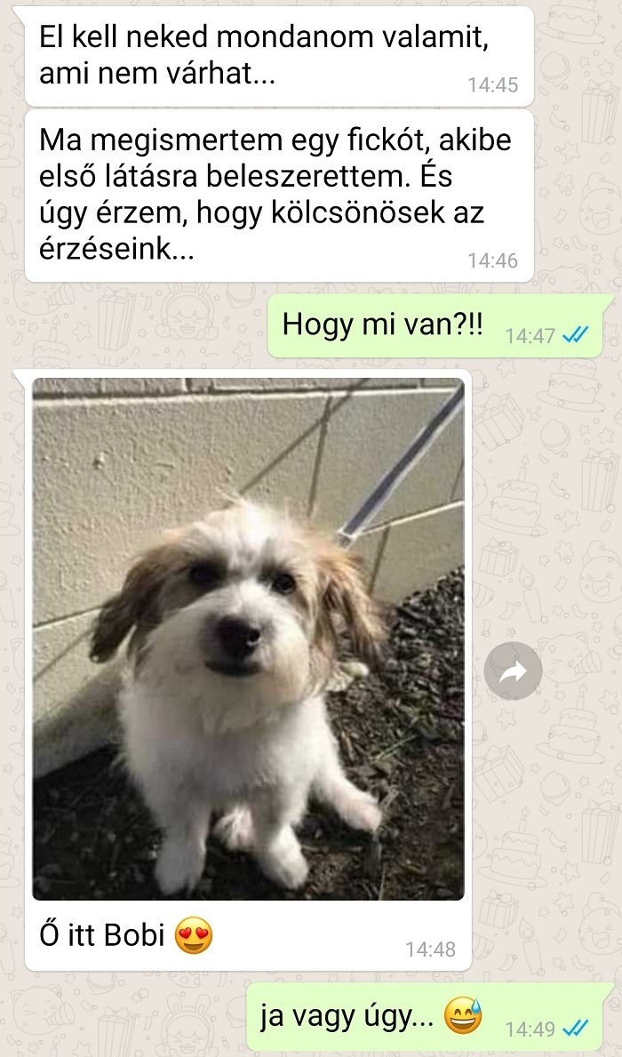 Erre rögvest elszaladt, és úgy 10 perc múlva került elő újra. Megkérdeztem tőle: