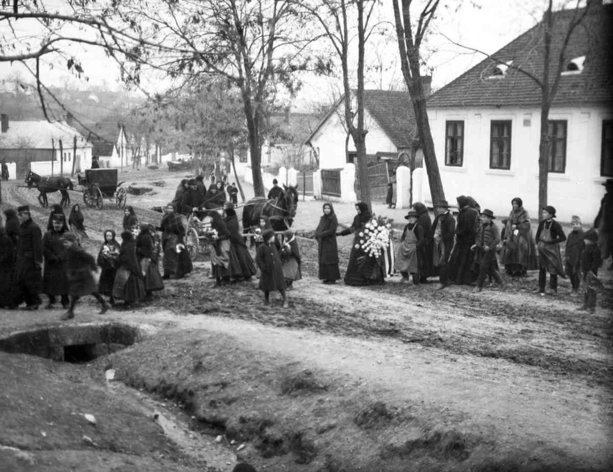 Hagyományos falusi temetés 1916-ban (Fotó: Fortepan/Németh Tamás)Tabusított halál, elfojtott gyász