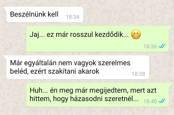3. A legjobb barátnőm kitalálta, hogy április 1-jén megtréfálja a barátját. Eljátszotta neki, hogy szakítani szeretne, mire a barátja azt válaszolta, hogy most nagyon megkönnyebült, ugyanis egy ideje már ő is úgy érzi, hogy a kapcsolatuknak nincs jövője és szakítaniuk kellene. Ilyen, amikor visszafelé sül el a tréfa.