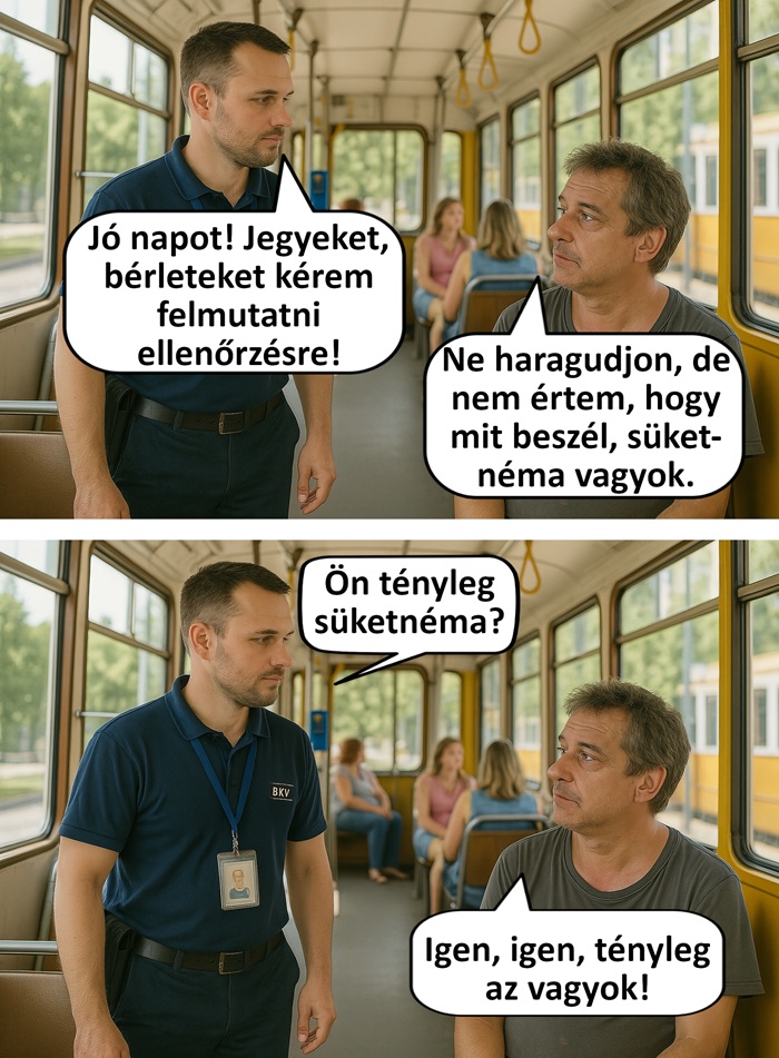 Utas: Hallod, amikor felszálltam, kajak bekopogtam a sofőröz, és mondtam neki, ott ülünk hátul az asszonnyal, hozzál már nekünk lécci 2 jegyet meg 2 kólát, de nem akar megmozdulni…