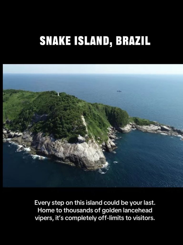Brazília partjainál található Ilha da Queimada Grande, közismert nevén Snake Island. A szigetet több ezer mérgező kígyó lakja, köztük a világ egyik legveszélyesebb faja, az arany lándzsakígyó. A belépés szigorúan tiltott, mivel a túlélés szinte lehetetlen lenne. Snake Island a természet egyik legfélelmetesebb tiltott helye, amelyről legendák és rémtörténetek keringenek.