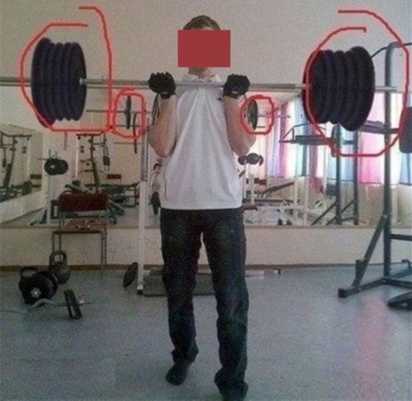 6. A tükörben mintha egy kicsit kevesebb súly látszana a rúdon. Egyébként meg ki az, aki farmernadrágban szokott edzeni?