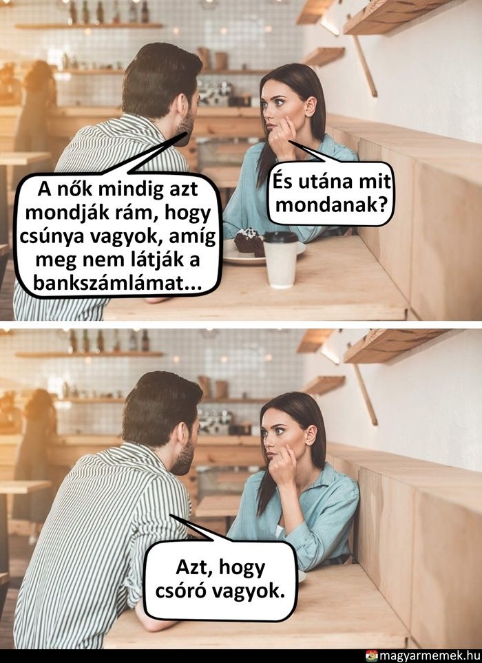 – Megsúgom, hogy a srác, akivel jöttél, a másik teremben veled párhuzamosan egy másik nővel is randizik.