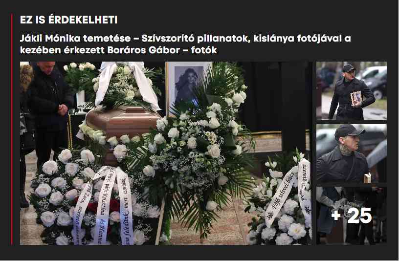 A fitneszmodell vőlegénye, Dobosi Roderik továbbá cáfolta azokat a pletykákat, miszerint ő bántalmazta volna párját. Jákli Mónika temetésére ma került sor, ahol a vőlegény és az ex most találkozott először a tragédia óta. Egymástól nem messze gyászoltak, Gábor a kislányáról fotókat is vitt az influenszer végső búcsúztatására. A temetés kapcsán lapunknak is megszólalt, előtte pedig a 24 óráig elérhető Instagram-sztorijában tisztázta a saját nézőpontját. Mint mondta, most utoljára szólalt meg az ügyben, a távol tartási végzés kapcsán ismét megjegyezte, soha nem értesítették őt ilyesféle bírói végzésről és Moncsi sem beszélt neki róla.