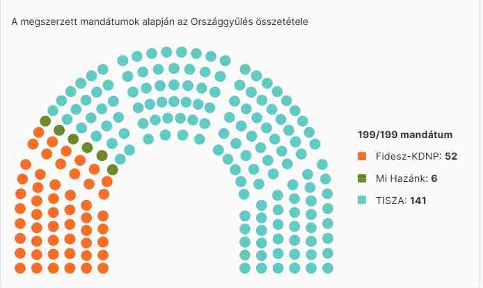 - A Tisza a vasárnap esti eredményhez képest még 4 további mandátumot szerzett. A 199 fős Országgyűlésben így 141 képviselője lesz. Az ilyen mértékű kétharmad abszolút rekord.