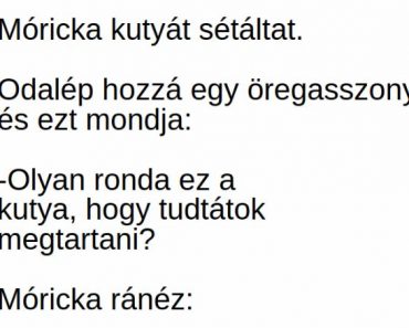 VICC: Móricka kutyát sétáltat. Odalép hozzá egy öregasszony, és ezt mondja