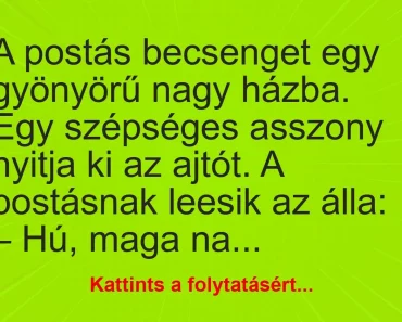 VICC: A postás becsenget egy gyönyörű nagy házba. Egy szépséges asszony nyitja ki az ajtót.
