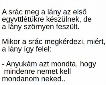Vicc: A srác meg a lány az első egy***létükre készülnek, de a lány szörnyen feszült