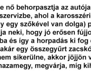 Egy szőke nő behorpasztja az autója oldalát. Elviszi a szervizbe, ahol…