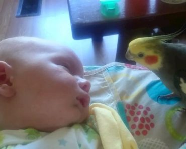 A csecsemő az alvás határán állt, amikor a papagáj odament hozzá énekelni és jóéjt puszit adni