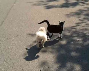 A vak kiskutyus bajba kerül – nézd a cica gyors reakcióját