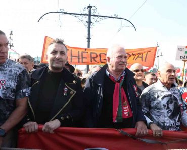 Gáspár Győző az első sorban feszít a Békemeneten