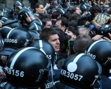 Videón, ahogy a rendőrök kiszorították és szétválasztották a tüntetőket a Fidesz-székháznál