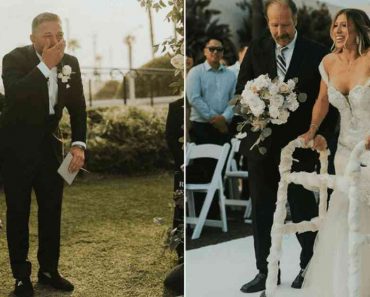 A kerekesszékkel közlekedő menyasszony meglepi a vőlegényt azzal, hogy végigsétál az oltárhoz az esküvőjükön
