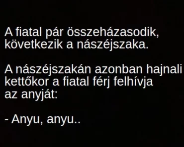 VICC: A nászéjszakán hajnali kettőkor a fiatal férj felhívja az anyját: