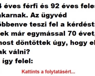 VICC: Egy 94 éves férfi és 92 éves felesége válni akarnak