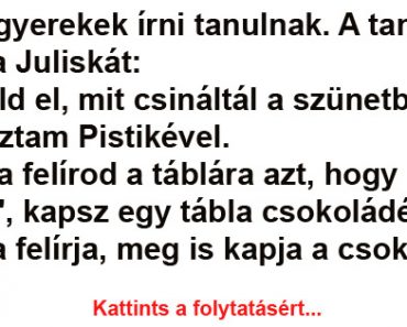 VICC: Elsős gyerekek írni tanulnak. A tanár felszólítja Juliskát