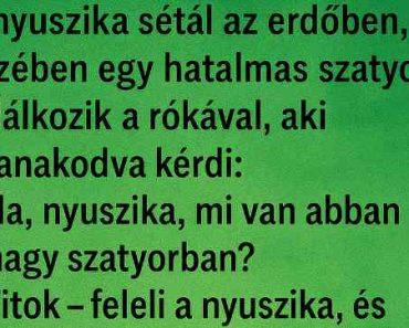 A nyuszika sétál az erdőben, kezében egy hatalmas szatyor.