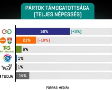 Medián: 18%-ot esett a Fidesz népszerűsége a választások óta, a Tiszáé már 56%-nál tart